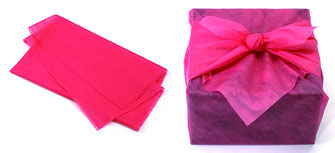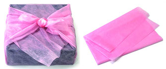 風呂敷はポリプロピレン製不織布で見た目の華やかさを訴求するよう7寸二段重セット用には赤色を7寸一段重セット用には桃色をご用意しました。ご使用後は再利用せずポリプロピレン製(PP):プラごみとして地域の廃棄方法により処分してください。
